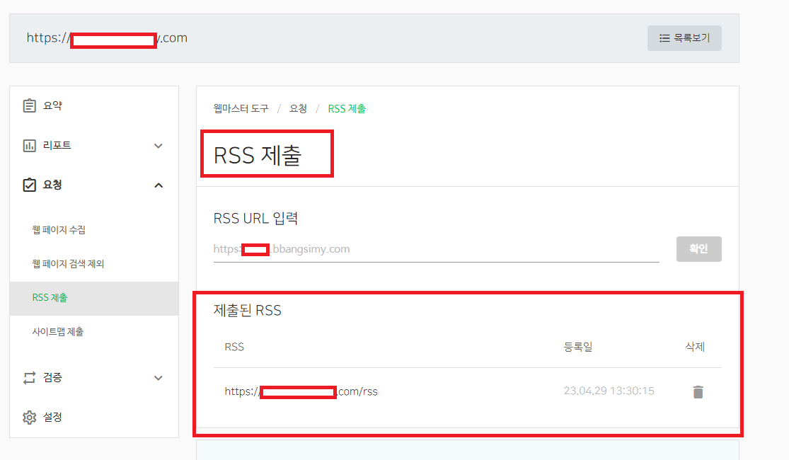 위와 같이 rss 제출이 정상적으로 제출된 모습입니다.